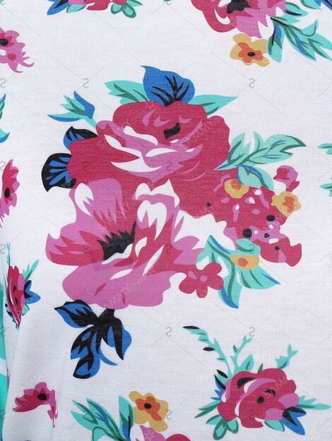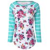Fresh Stripe Floral Print Long Raglan Sleeve T-Shirt